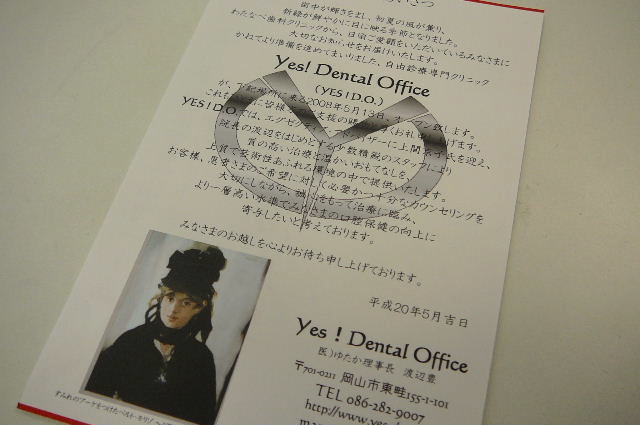 岡山の渡辺先生から、開院の御挨拶状が届きました。
