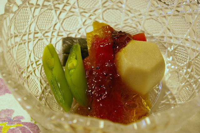 冷やし鉢 夏野菜のゼリー掛け やはりガラスの器が夏は良いね♪