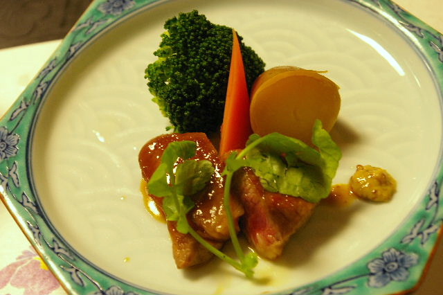 焼物 牛ヘレステーキ 最近はこんな風に最高の牛を一口付けるのが主流なんでしょうか?勿論、柔らかくて美味しい!