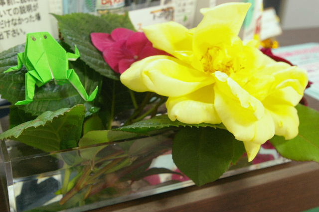 患者様が、受付にすぐ飾れるように、こんなにしてお花を持って来てくれました♪バラの香りが受付を包んでくれます♪