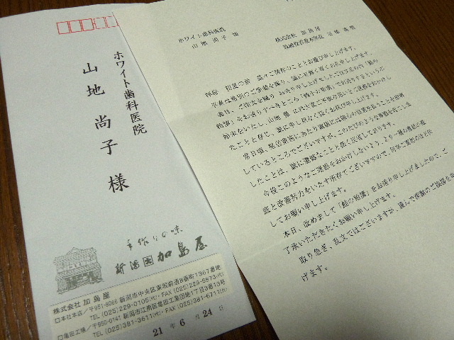 昨日、思いがけず和久傳から封書が届きました。