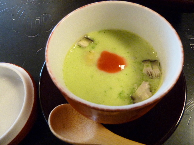 冷製茶碗蒸し。蓋を開けたときの緑色が新鮮でした。