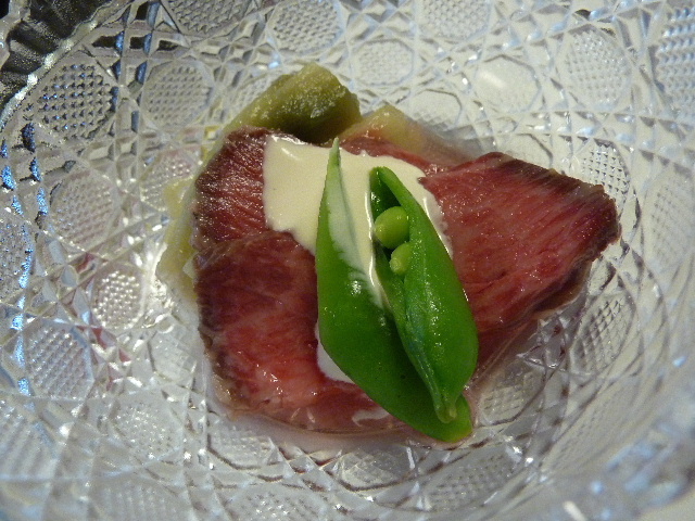 油の程よくのった和牛ロースト、なすの冷たい楚合せ。器との取り合わせが良い感じす(*^_^*)