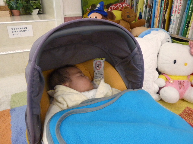 可哀想な位、び〜び〜泣いていました。(結構、男の子の方がママ大好き!女の子は結構あきらめてすぐ寝る!)