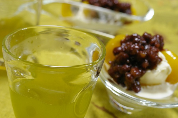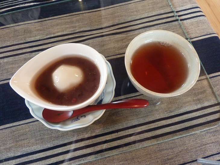 暖かい小豆茶も美味しく・・・