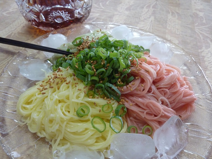 お昼御飯は、お母さんの好物のおさしみとにぎりを用意し、