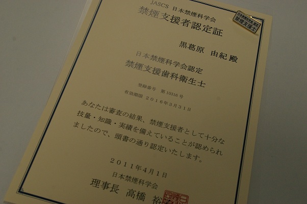 正式にJASCS日本禁煙科学会 禁煙支援者認定証が