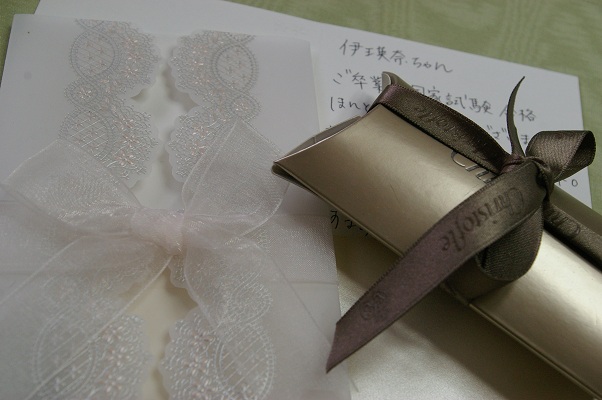 I奈にお祝いの優しいカードがゆうちゃんから届きました♪