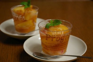 桃をたくさんいただいていたので、梅酒を少し入れたり、ワインを入れたりして、桃シャーベットを作っていたのをデザートに(*^^)