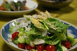 沢山いただいていた、玉葱をスライスして氷水でさらして、麻の実をふりかけてサラダ♪