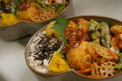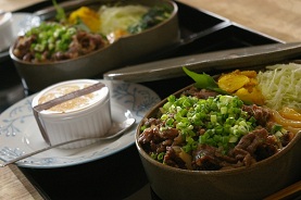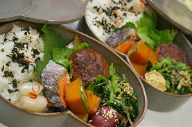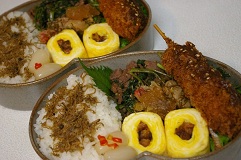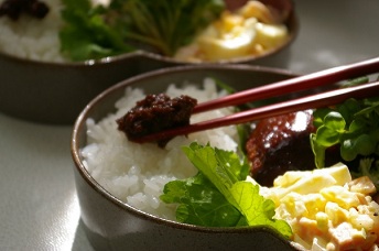 沢山頂いたつやつやのほくほくの美味しい新米に、学さんのお料理教室で頂いた、肉みそをのっけて、まかない弁当なり(^u^)