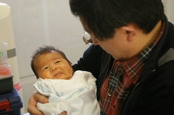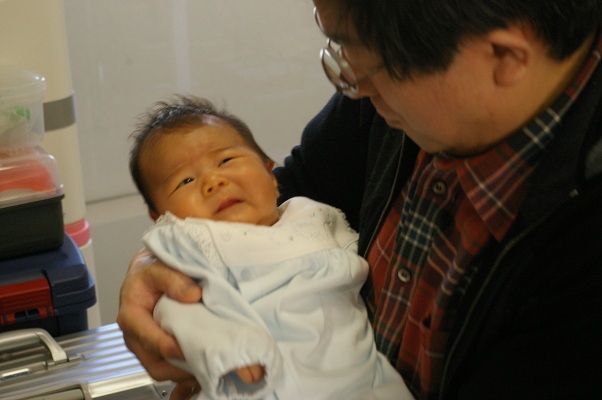 院長が、こわごわ、抱かせてもらうと・・・