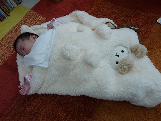 この10月に生まれたばかりの赤ちゃんを連れて