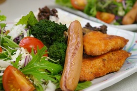 今日は、幼稚園児のお弁当のようなカラフルまかない弁当です(^u^)