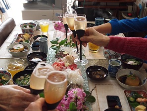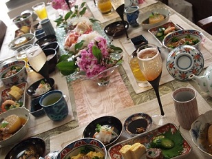 実家で皆が集まって手作りで母とお料理を作ってお膳を囲んだのが